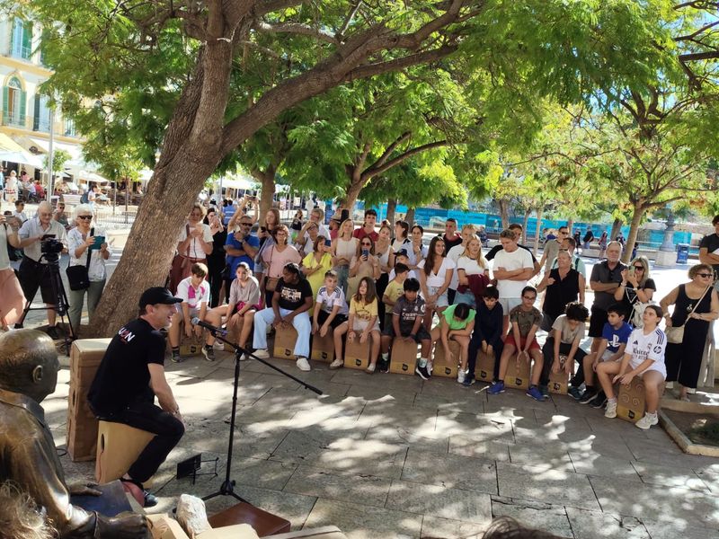 Durante la jornada del jueves 23 de octubre, el alumnado de Educación Primaria del centro Nuestra Señora de Gracia visitó el Museo Casa Natal Picasso y realizó un taller para realizar un mural sonoro que se descubrió en un acto público el viernes 24 por la mañana en la Plaza de la Merced, junto a la escultura de Pablo Picasso. El mural desveló una imagen del artista malagueño y se hizo sonoro en un emotivo homenaje dirigido e interpretado por Pepe Zapata al cajón y Carlos Cortés a la guitarra.