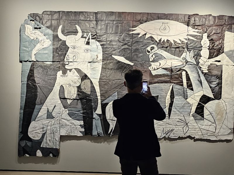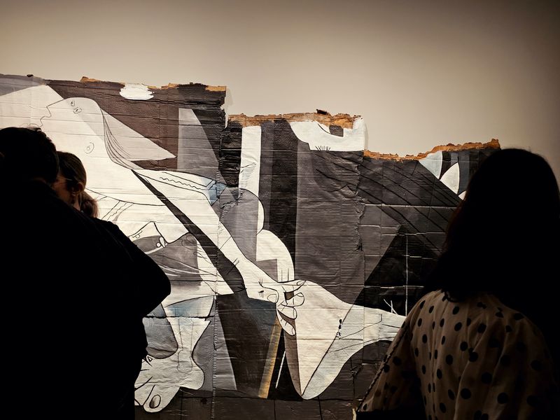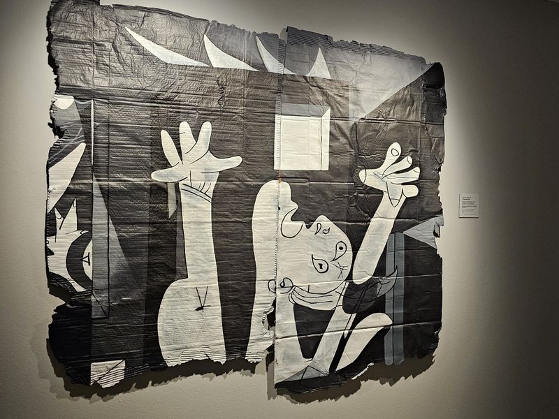 La exposición se estructura en dos líneas narrativas que avanzan en paralelo. Por un lado, la propuesta artística de Anaya, basada en su particular uso del cartón como soporte, y, por otro, el contexto sociopolítico en el que Picasso creó ‘Guernica’, una de las obras más emblemáticas del siglo XX.