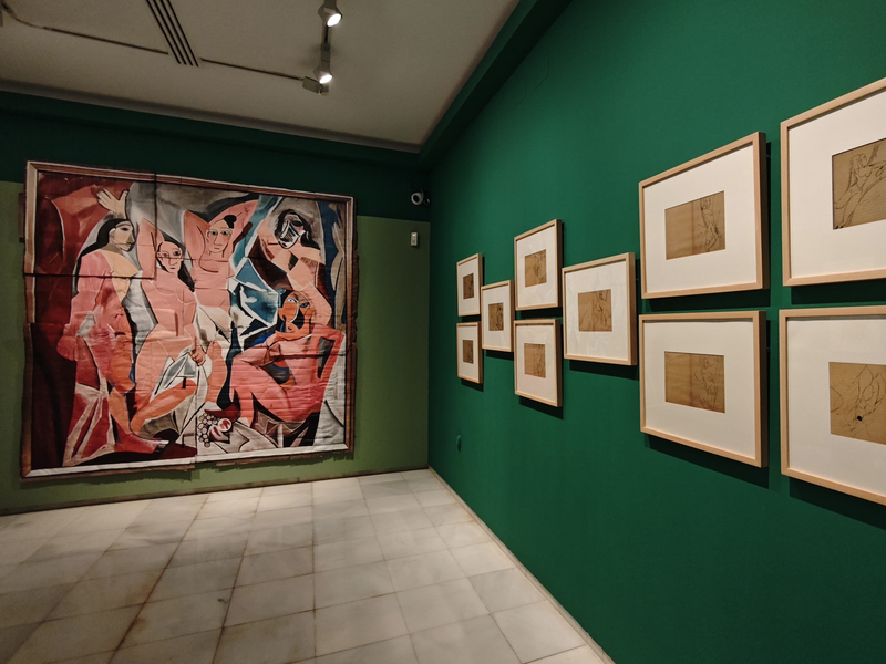 La obra se muestra junto a los dibujos originales del Cuaderno n.º 7 de bocetos, el único existente en España de los 16 que dedicó Picasso a esta obra seminal del artemoderno